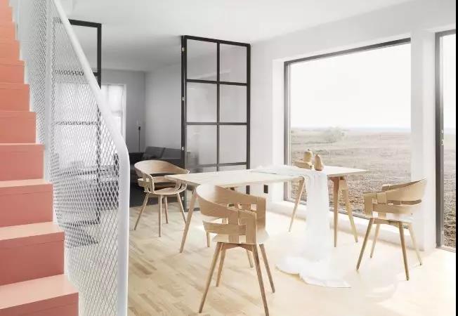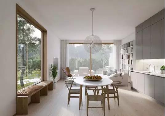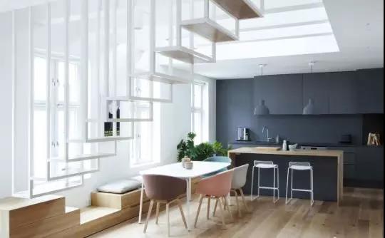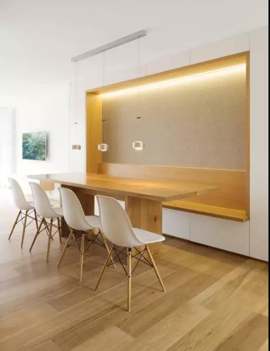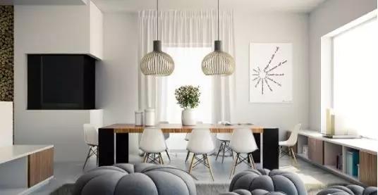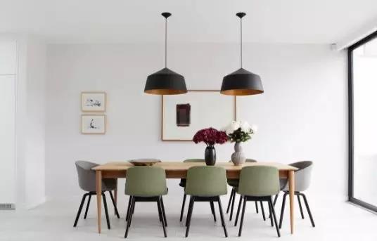 如果餐廳面積不夠大,還可運(yùn)用一張北歐風(fēng)格的長形餐桌去拉長整個(gè)餐廳的長度。