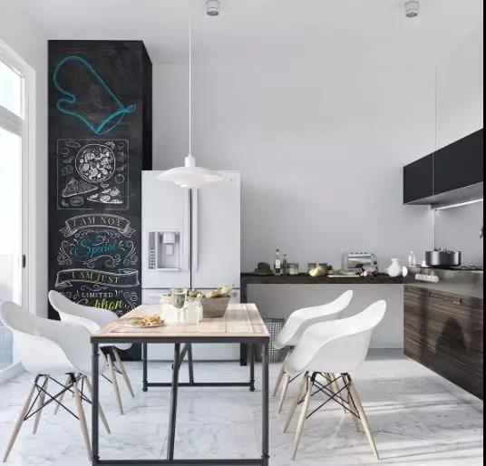 在極簡主義風(fēng)格的餐廳中,使用一面黑板墻等創(chuàng)意元素,增添個(gè)人風(fēng)格特色。