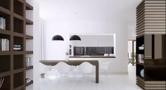 在極簡主義風(fēng)格設(shè)計(jì)中,深色不如鮮明的白色,比黑色更加溫和,融入其中有鮮明的對比效果。
