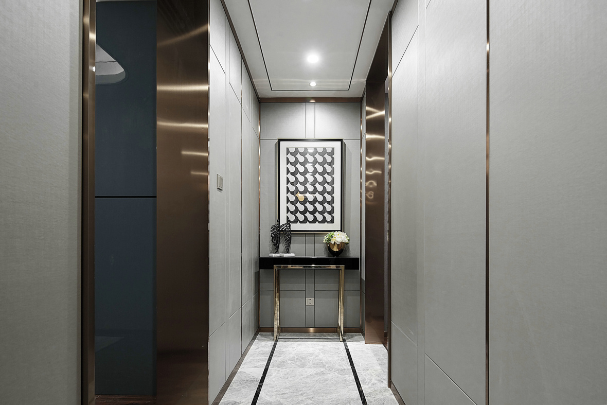如果兩個(gè)門的距離遠(yuǎn),空間允許的話可以放置屏風(fēng),轉(zhuǎn)化場(chǎng)態(tài)。