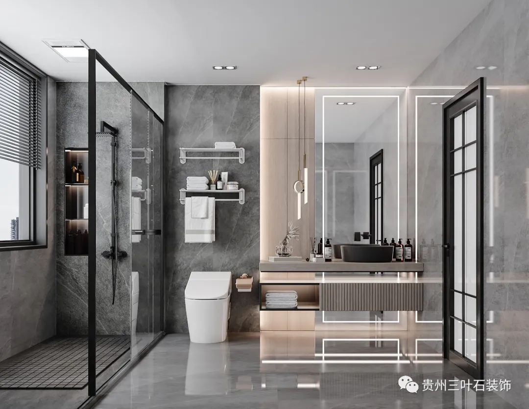 11、衛(wèi)生間空間足夠的話一定要做干濕分離,最好選擇玻璃淋浴房設計,為了安全起見需要貼上防爆膜。